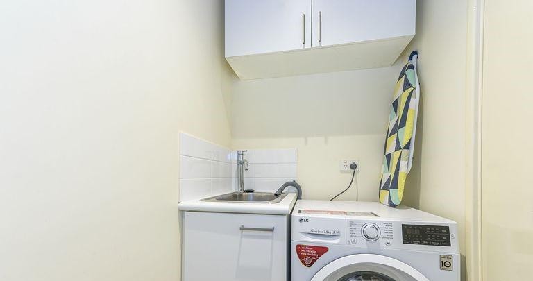 Property Features :Living- Guest powder room and laundry with washing machine included - Bathroom with combined bathtub & shower and floor to ceiling tiling- Open plan kitchen with fridge, living and dining with ceiling fan - Galley style kitchen with stone bench top and stainless steel appliances, pull out pantry and dining table- Built in robes to both bedrooms Key Features- Downlighting and feature lighting throughout - Original stainless steel windows- Reverse cycle AC to master- Stone benchtops- Ceiling fan and AC to living space - Vaulted timber lined ceilings upstairs - Timber floorboards throughout - Under stair storage- Secure guest intercom access- / Exterior-Entertaining lounging deck area with tree top and city skyline views. Parking & storage-Secure automatic gated Parking for 2 tandem-Secure store room